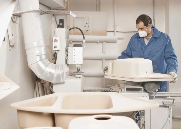 После полимеризации изделия отправляются в цех механической обработки. После фрезеровки кромки и сверления технологических отверстий, изделия поступают на участок комплектации и упаковки.